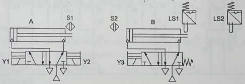 실린더 B가 후진하면 리밋스위치 LS1의 접점이 붙어서 신호가 발생할 것이다.