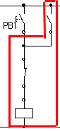 PB2 아래에는 연속동작을 끝어주기 위한 B접점을 배치하였다. 그냥 선으로 연결해도 된다.