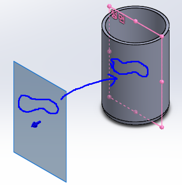 등각보기에서 그린 스케치를 곡면에 투영해 본다.