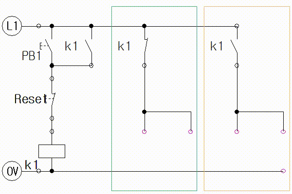 예를 들면 릴레이 K1의 a접점과 b접점을 각 각 배치하고 두 접점들 밑으로 다른 동작을 귀속시키는 경우가 있을 것이다.
