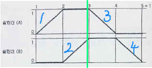실린더B는 2번 4번 릴레이에 의해 전/후진을 한다.