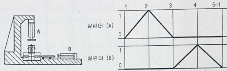 ① 실린더 A, B가 전진 및 후진동작을 하더라도 비상 정지신호가 있을 때에는 모두 후진을 완료한 후 정지한다.
