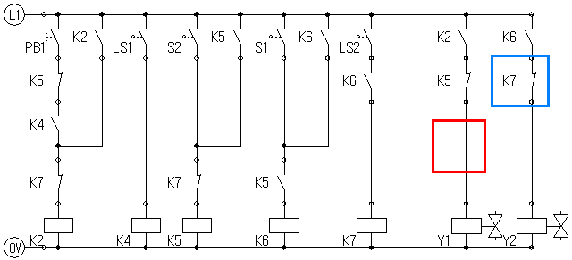 1) 비상 스위치(푸시버튼 잠금형)를 추가하여 다음과 같이 동작이 되도록 한다.