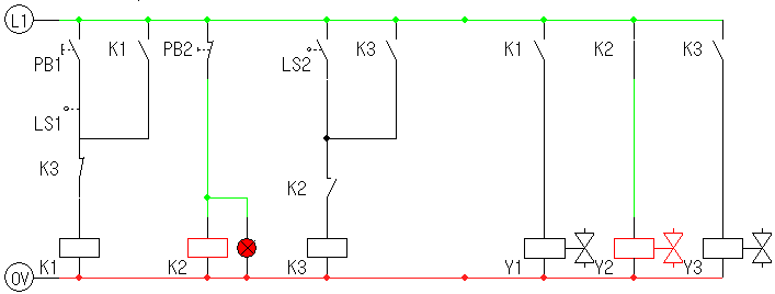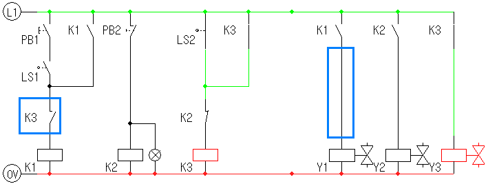 PB1을 누르면 K1이 여자되어 Y1에 신호가 계속 가야 한다.