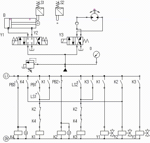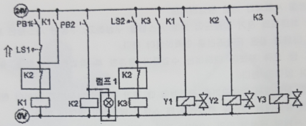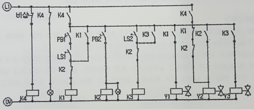 다시말해 PB3(비상)을 누르면 릴레이 K4가 여자되어 K4 b접점으로 실린더 A의 전진과 모터의 회전을 끊어준다.