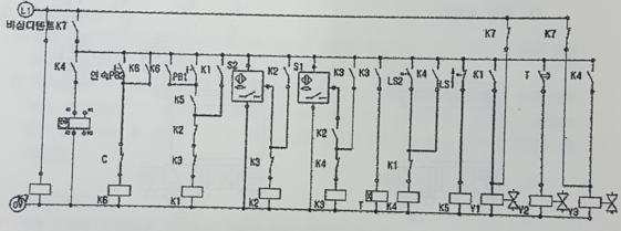 2) 시작스위치(PB1) 외에 연속동작 스위치(PB2)와 카운터를 사용하여 연속 사이클 회로(반드시 회로를 구성하고 잠금장치 스위치는 사용불가)를 구성하여 다음과 같이 동작되도록 한다.