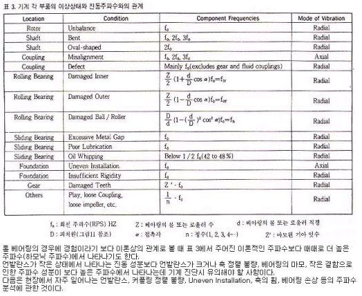 정확한 내 외륜 결함 주파수 공식은(단위는 Hz)- 상기 표 참고