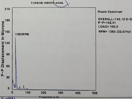 이 설비에서 발생하고 있는 결함 원인을 기술하고 대책을 제시하시오 (단, 터빈의 정격 회전수는 4616RPM이다)