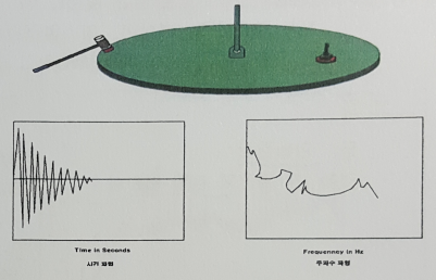 73. 동영상과 같이 고유진동수 측정시 대상물이 응답하는 시간과 주파수 파형을 간단하게 그리시오. (햄머로 판때림 동영상)