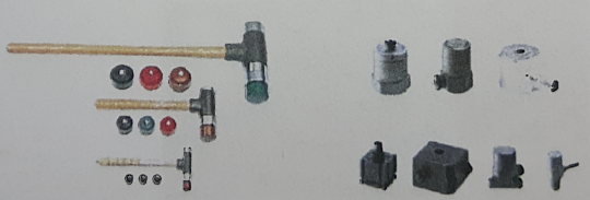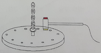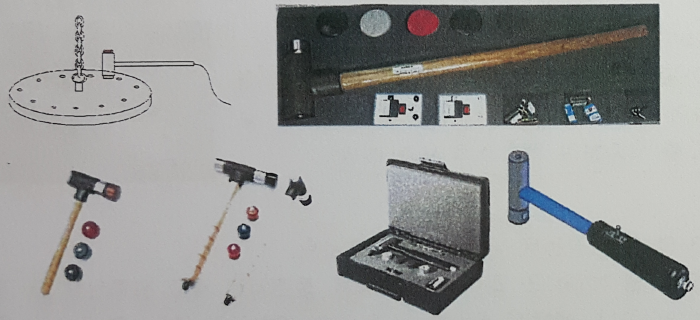 케이블이 달린 작은 망치를 매달린 둥근 원판을 두들긴다. 원판에는 작은 센서가 보인다. 망치는 캡을 교환화는 구조이다.