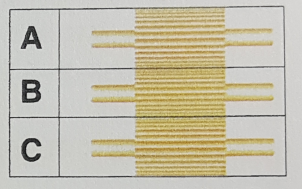 A 상단 기어잇수 : 256개, B 중간 기어잇수 : 157개, C 하단 기어잇수 : 94개