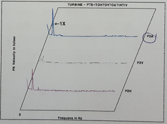 64. 동영상은 TURBINE의 수직방향에서 측정한 진동 스펙트럼을 보여주고 있다.