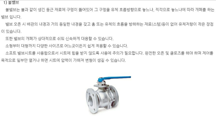 밸브(Valve) 란? 유체를 통하게 하거나 차단 또는 제어하기 위하여 통로를 개폐할 수 있도록 한 가동 기구...