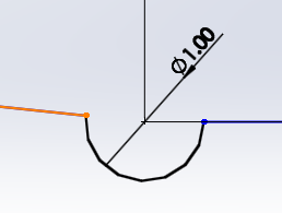 스케치를 거꾸로 그려서 요소 대칭복사로 반전이동시키고 회전한다.
