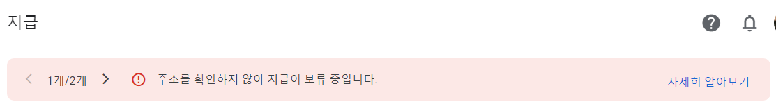 구글 애드센스에 들어가니 '주소를 확인하지 않아 지급이 보류중입니다.'라는 메시지가 상단에 떠 있었다.