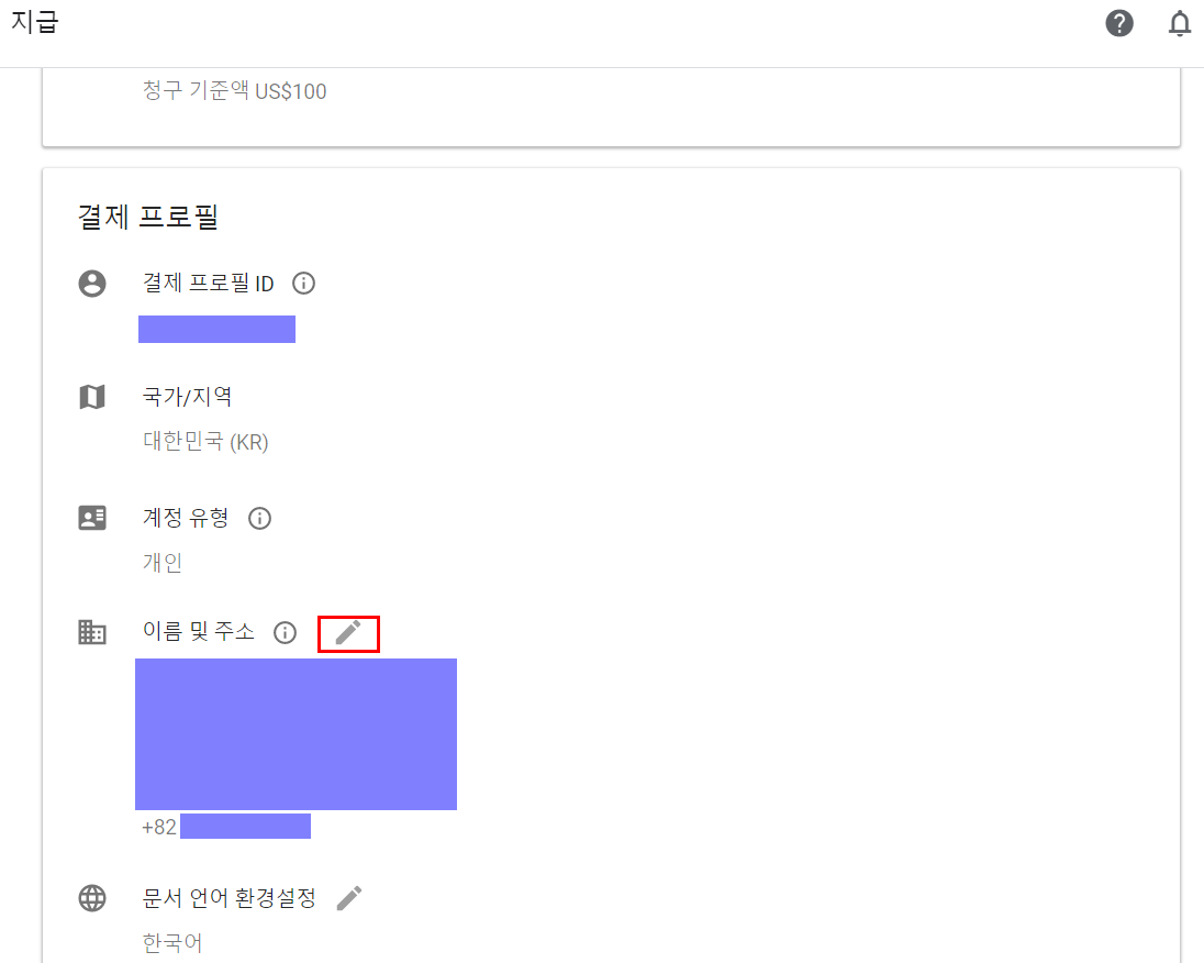 '설정관리'로 가면 결제 프로필내에 '이름 및 주소'를 확인한다.