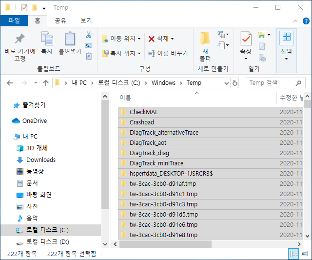 windows temp 폴더의 감염된 바이러스 파일[temp 폴더 청소]