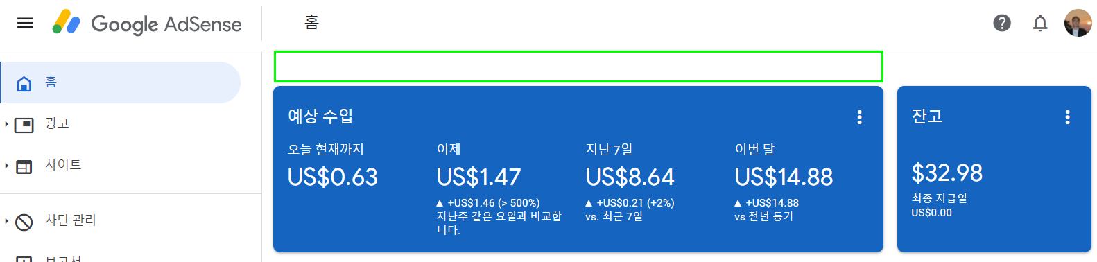 현재 구글애드센스 광고를 사이트에 게재되고 있는 상태인데 아래의 메시지는 광고수익을 받을 수 있는 절차가 한가지 더 남았다는 뜻이었습니다.