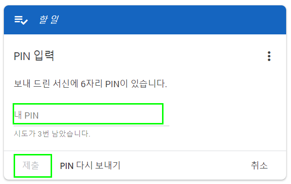 받은 PIN번호를 등록해 보도록 하겠습니다.
