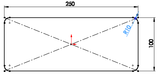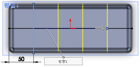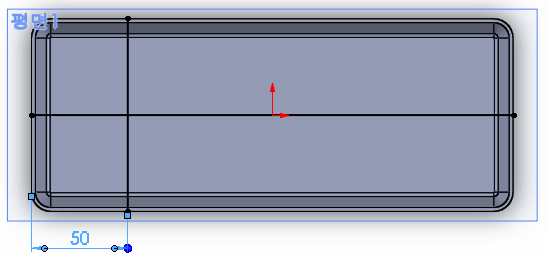 윗면에서 중심사각형으로 네 모서리는 '스케치필렛'으로 스케치한다.
