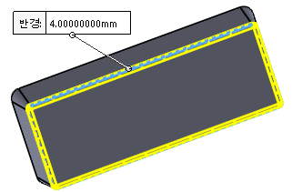 바닥면에 필렛 4mm를 적용한다.