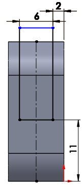 윗 부분을 관통시키기 위해 사각형을 위치에 맞게 스케치한다.