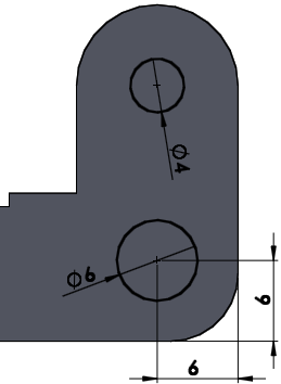 큰 구멍은 지름 6으로 카운터 보어 해주어야 한다.