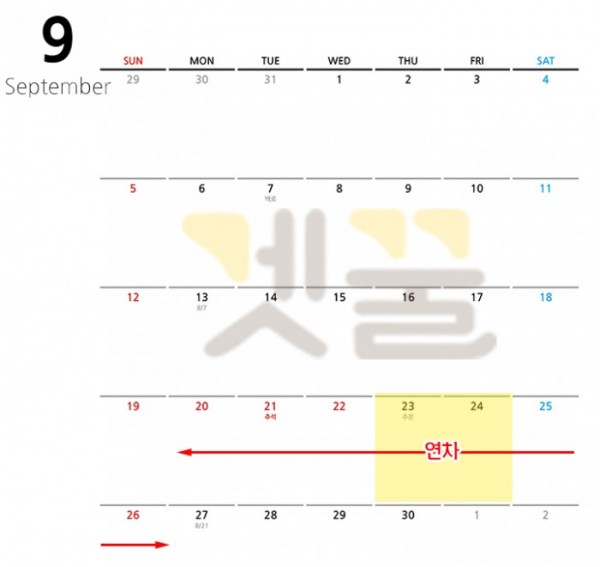 연휴가 끝나는 22일 이후 23일, 24일 연차를 쓰면
