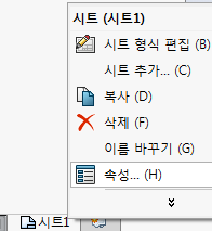 화면의 왼쪽 밑에 시트에 우클릭 - 속성 클릭 (배율을 1 : 1)로 수정한다.