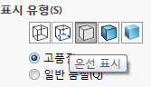정면도를 클릭하고 왼쪽의 은선표시를 누른다.