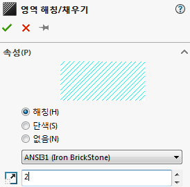 '영역 해칭/채우기' 클릭 - 단면 클릭