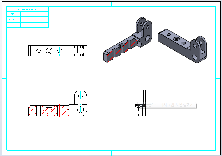 지금까지 만든 7번 모델링 두개를 도면화하기 위해