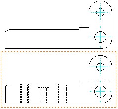 - 정면도와 우측면도, 평면도에 숨은선이 있다.
