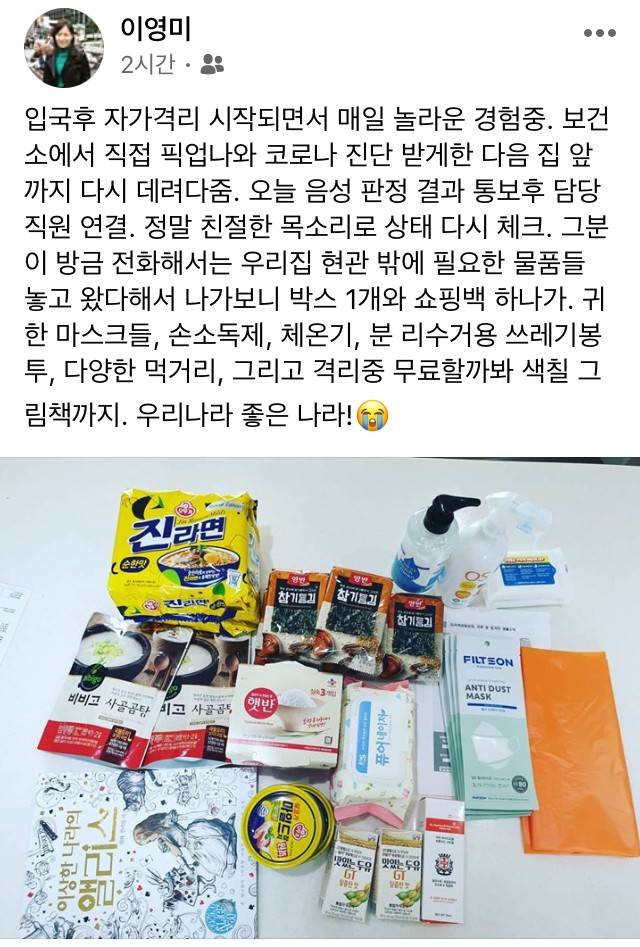 미국에서 입국후 자가격리 중인 기자의 페북