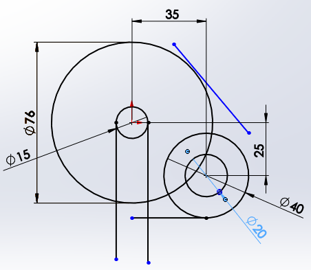 원과 사선을 탄젠트 조건을 줄 때 원 스케치가 틀어주는 경우가 있다.