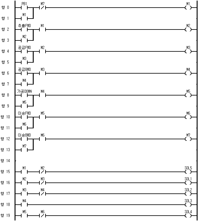 글로파PLC_실린더3개 제어(A+ A- B+ B- (A+C+) (A-C-))