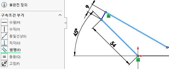 현재는 '스케치 구속조건'이 보이지 않는 상태이다.