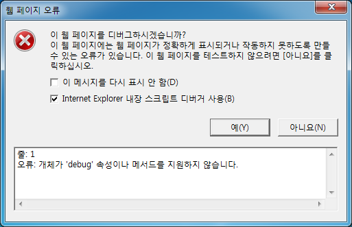 '이 웹페이지를 디버그 하시겠습니까' 오류 해결하기