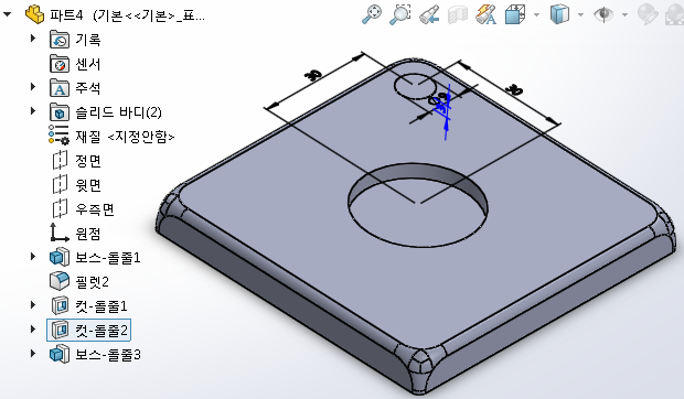 다시 원형패턴작업을 '보스-돌출'에 하는데 잘 인식이 안되어 에러가 나는 경우가 있다.