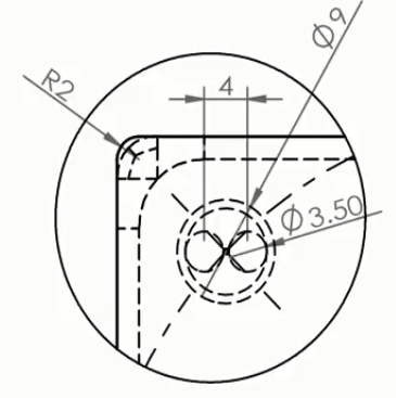 네개의 꽈배기 기둥이 들어갈 홈(지름 9, 두께 3mm)을 판다.