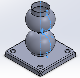 참조형상-기준면 클릭 + 경로선과 평행이 되는 면 클릭 + 원 중심 클릭한다.