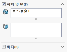 왼쪽 '솔리드 바디'에도 '보스-돌출'은 작은원(코르크 마개), '컷-돌출'은 바닥면으로 구분되어 있다.