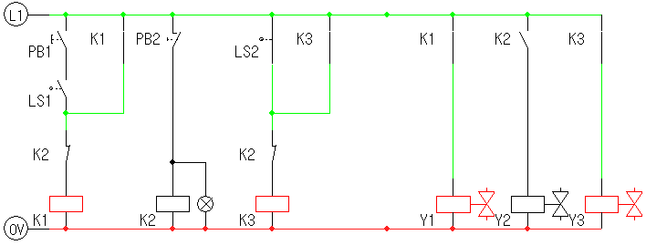 PB1을 누르면 K1이 여자되어 Y1에 신호가 계속 가야 한다.