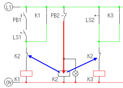 첫 단계의 K3 b 접점을 K2 b접점으로 수정을 하고