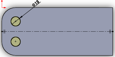 중앙에 보조선을 긋고 '동적대칭복사'를 이용해 지름 13인 원을 위아래 스케치한다.