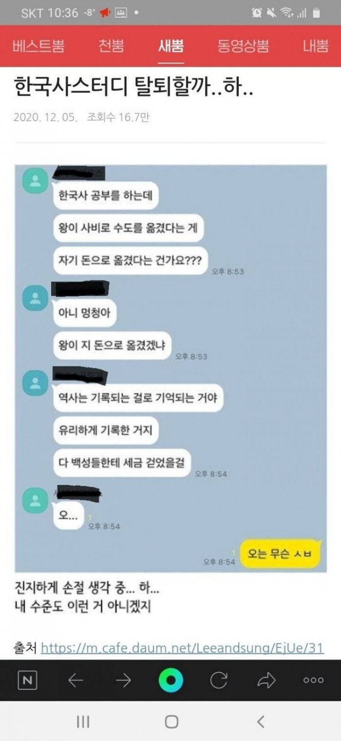 한국사 스터디 탈퇴 고심..